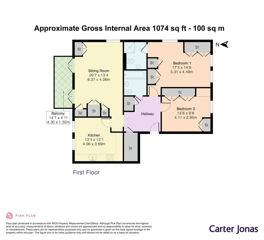 1,074 (99.8 Sq M) approx.